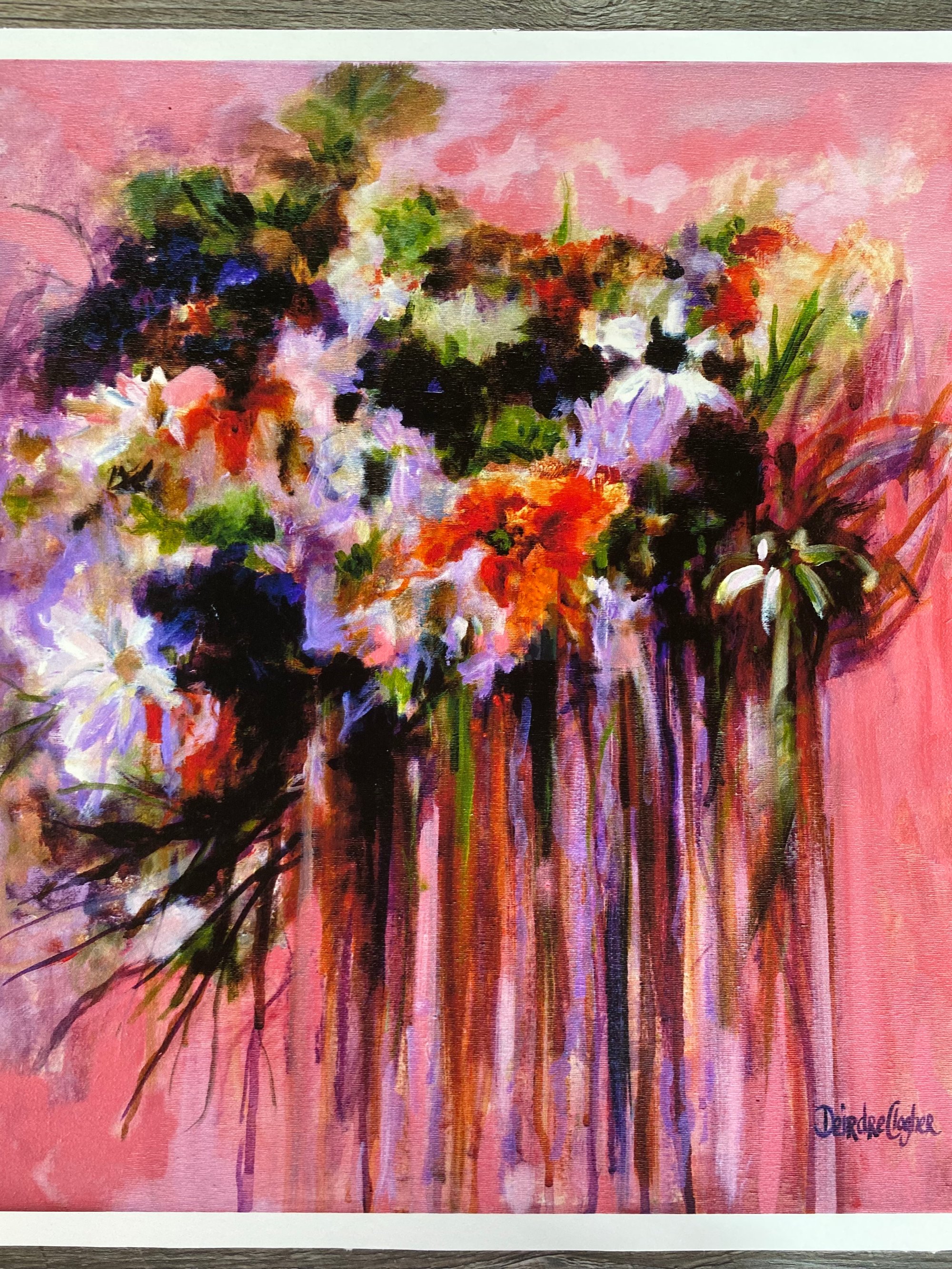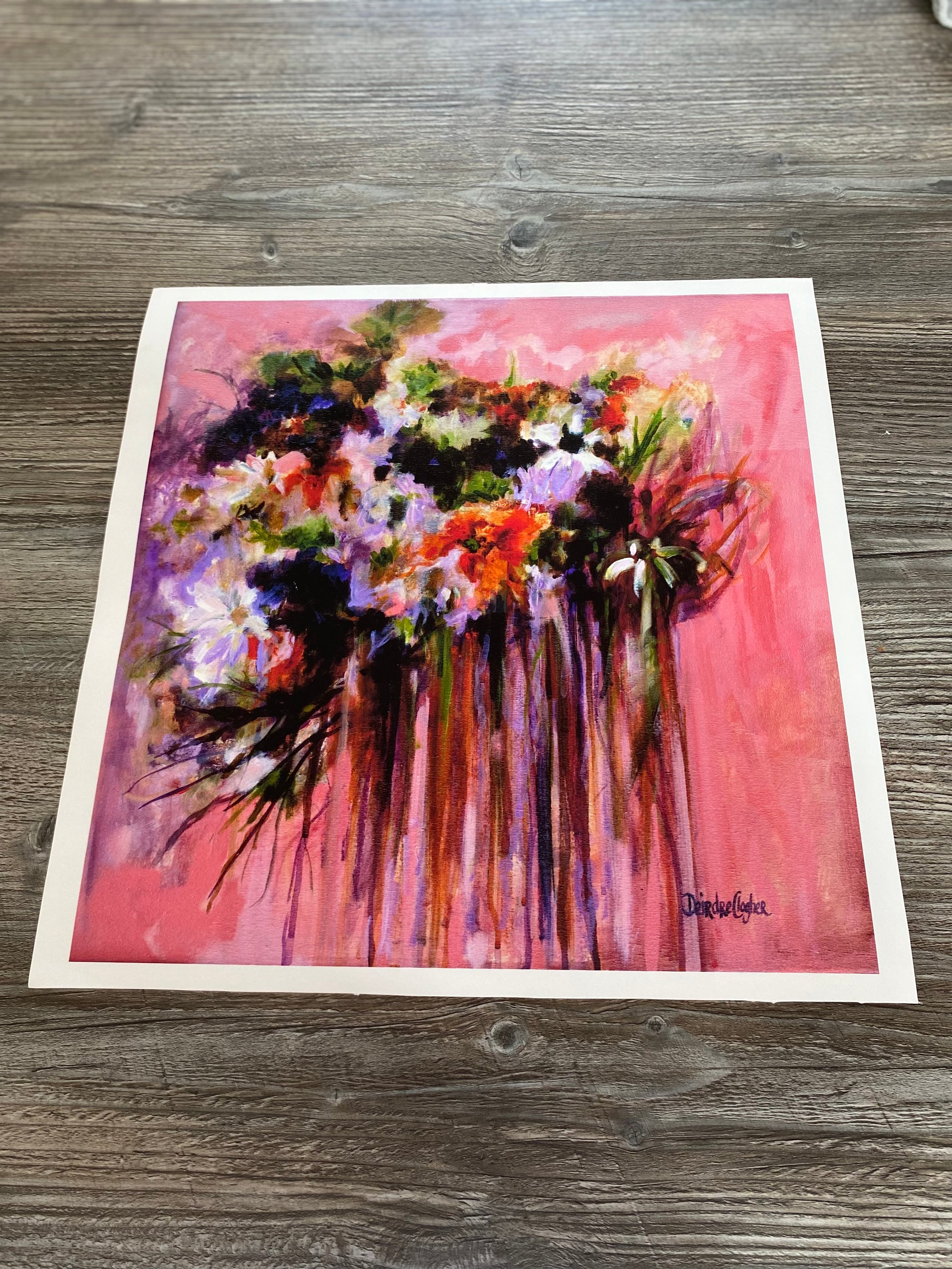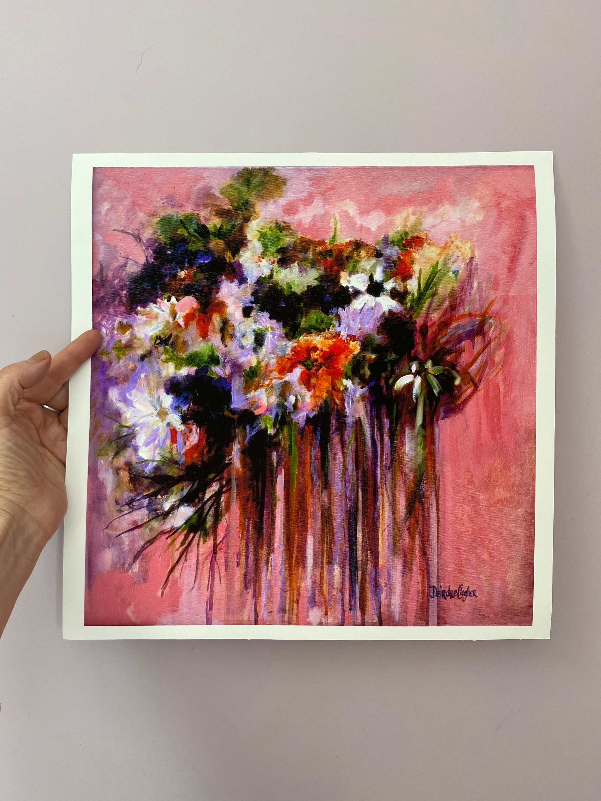 Limited edition giclee art print of Rhapsody , a gorgeous blend of coral and purples . Printed on beautiful high quality Hahnemuhle photo rag paper . Guaranteed fade resistant with incredibly fine detail and vibrant colour . 12 x12 inches unframed but can also be framed on request